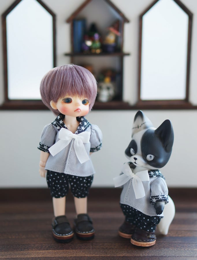 オビツ11サイズのセーラーカラーシャツとパンツのセットです。